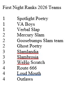 - At least 12 teams and up to 28 Individual poets competing together!